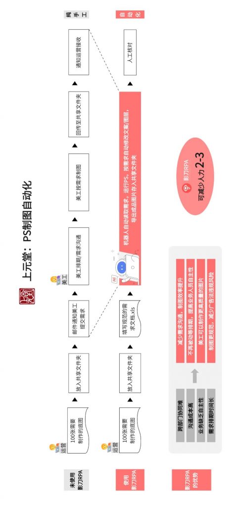 问据说,上元堂的美工部门提了一个需求,是希望能用RPA和PS结合,自动制作产品图片。能介绍一下这个需求的背景,应用场景,以及目前用RPA解决到怎样的程度了吗?