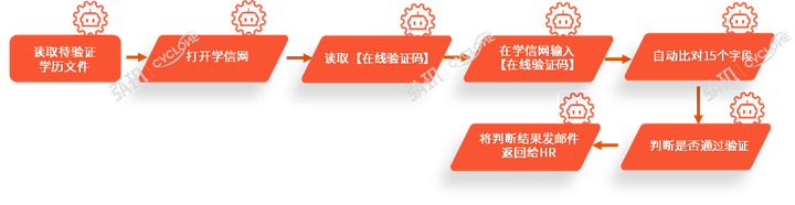 学历是目前很多用人单位在选用人才时的重要参考。学历认证,也称学籍档案服务资格认证,是一项保护公民隐私、倡导道德诚信、维护社会公平的档案管理工作。新员工入职时,HR都需要核验其学历真实性,以保证应聘流程的公平。虽然流程不复杂,但业务重复度高,当企业招聘需求较大、需要验证大量学历信息时,这项流程相当耗费时间。HR可以将整个流程都交给弘玑Cyclone数字员工完成,适用于人员流动快、招聘需求量大、学历验证需求多的大中型企业。