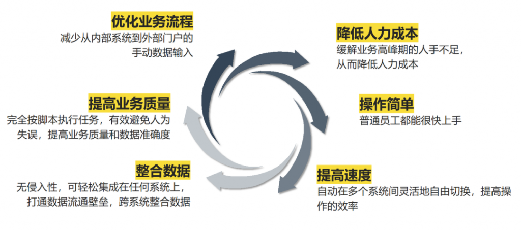 来也科技RPA机器人的无侵入性支持轻松集成于任何系统,能够自动在多个系统间灵活地自由切换,实现跨系统整合数据,有效打通内外数据流通壁垒,提高物流流程处理效率。