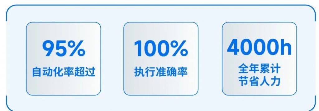 截至目前,万家基金数字员工平台已覆盖基金运营部、市场营销部、合规稽核部、信息技术部,共有近40余条日常业务操作流程实现自动化操作,自动化率超过95%,执行准确率达100%,全年累计为公司节省人力近4000个小时。
