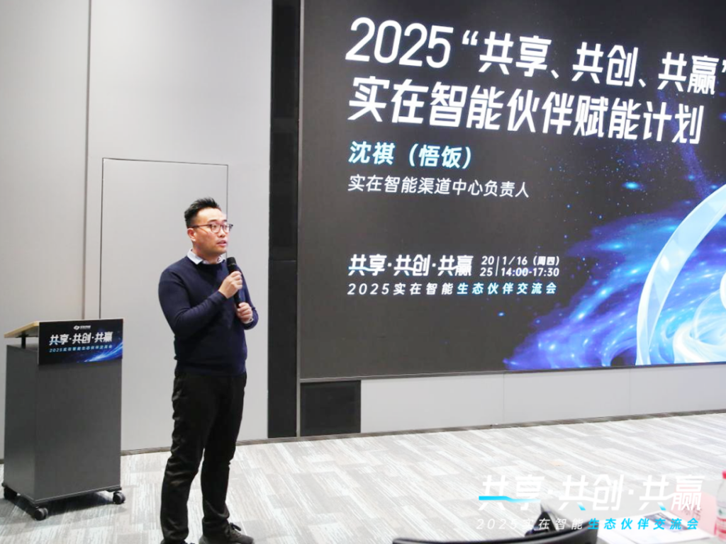 岁首新程,砥砺奋进。1 月 16 日,2025 实在智能生态伙伴交流大会于南湖未来科学园圆满举行。实在智能携手华为、联想懂的通信、同花顺、网易、中国华能、观远数据、分贝通等诸多行业领军企业,与 100 余位生态伙伴齐聚一堂,围绕 “共享・共创・共赢” 这一主题,深入探讨实在 Agent 智能体、企业大脑等 AI 应用生态的发展机遇,以及产业融合所蕴含的无限潜能。