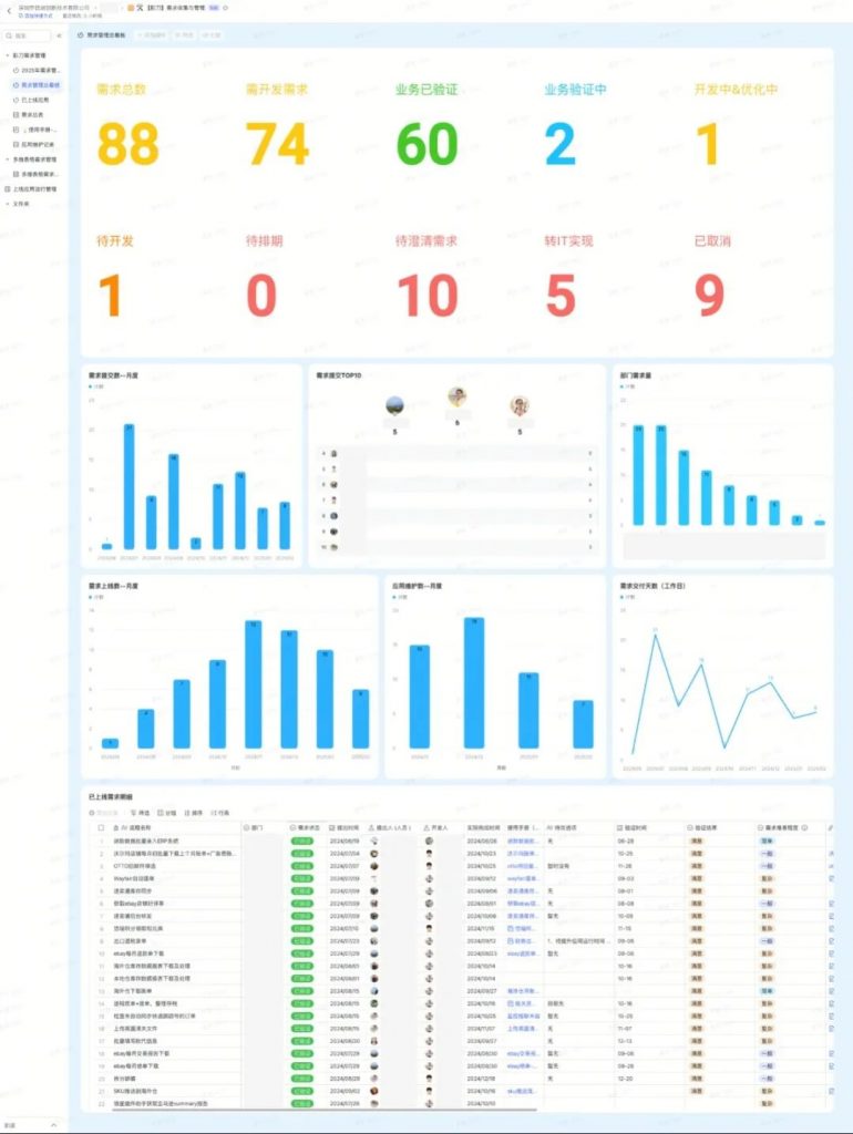 半年多的时间,信诚创新如何在公司多个部门成功落地数十个高价值的RPA场景?影刀了解到信诚创新有一套完善的RPA项目管理流程,结合飞书多维表格,将需求提交、评估、反馈、验证、开发、上线及维护等环节标准化,形成了高效的SOP。同时,通过仪表盘搭建可视化项目看板,实时监控项目进度与效果,确保每个环节精准高效。