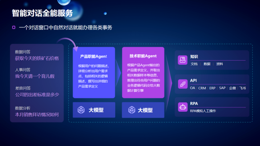 艺赛旗联合创始人&CTO吴鑫,就“探秘产品进化之路,解锁前沿科技蓝图”做主题分享。吴鑫表示目前AI技术已通过多场景加速与实体经济深度融合,正从辅助工具升级为决策大脑,推动着企业数智化转型进入新阶段‌。并从技术演化视角,拆解了DeepSeek等AI工具与RPA的融合逻辑。