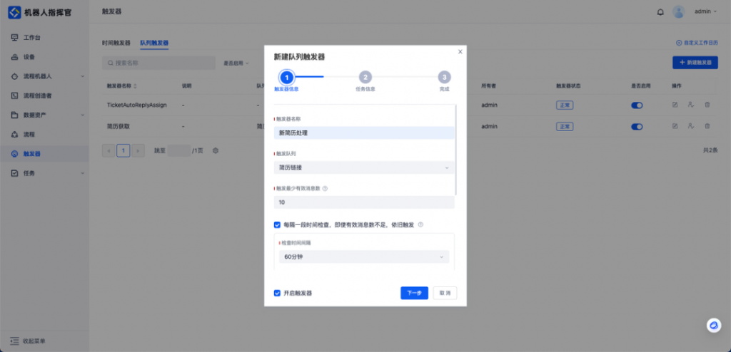 任务功能增强:新增队列触发器,支持更灵活的任务触发方式。任务支持取消、停止和设置有效期,同时完善了异常通知功能。
