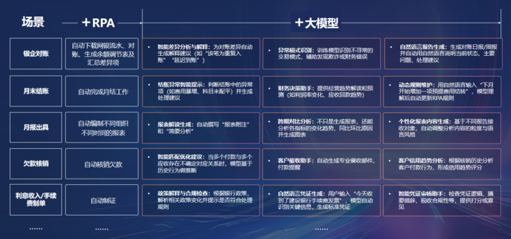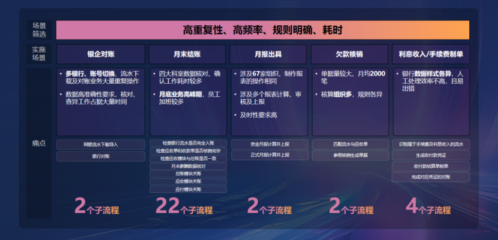 涉及多银行、账号切换以及大量流水下载和对账操作,RPA 实现了网银流水下载导入、银行对账等流程自动化