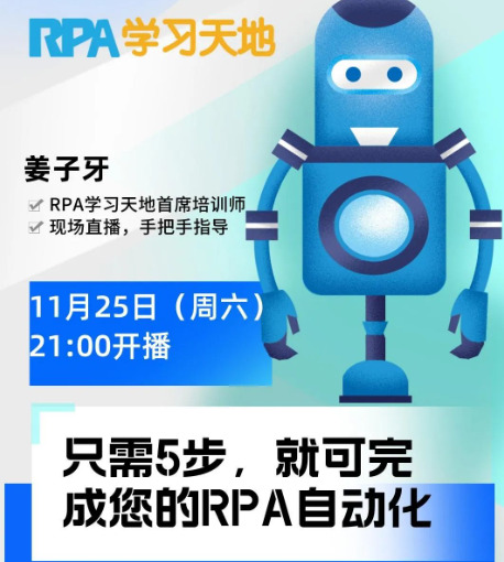 后续直播参与方式微信公众检索:RPA学习天地,关注公众号动态,参加主流RPA培训学习及免费公开课活动。