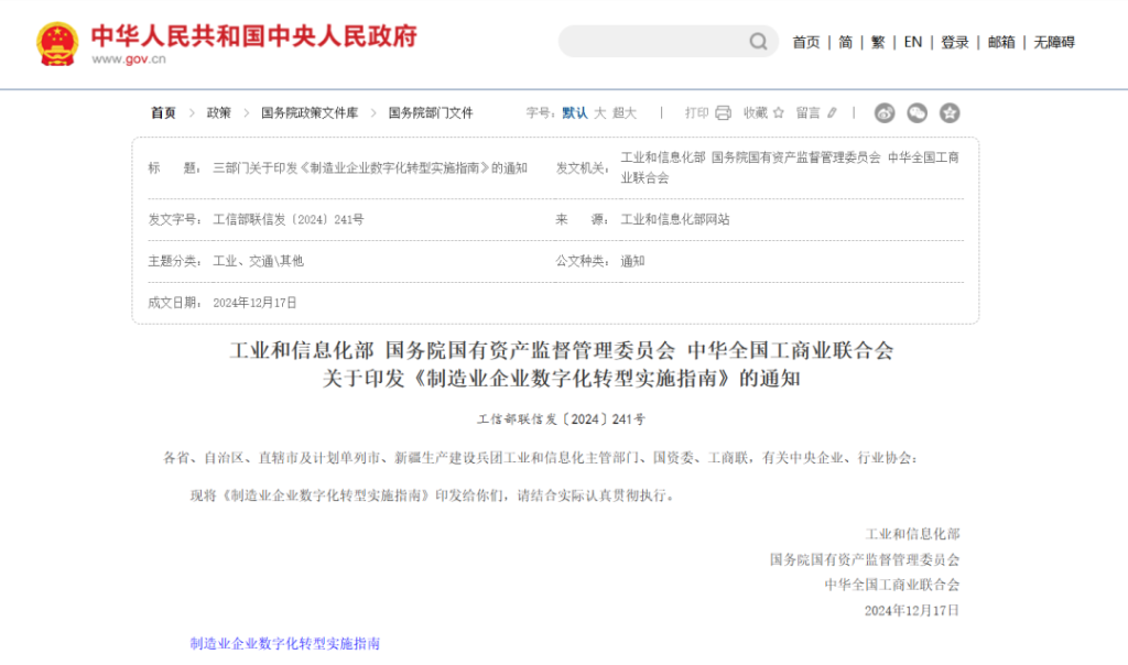 ↳ 图1:三部门联合发布的《制造业企业数字化转型实施指南》