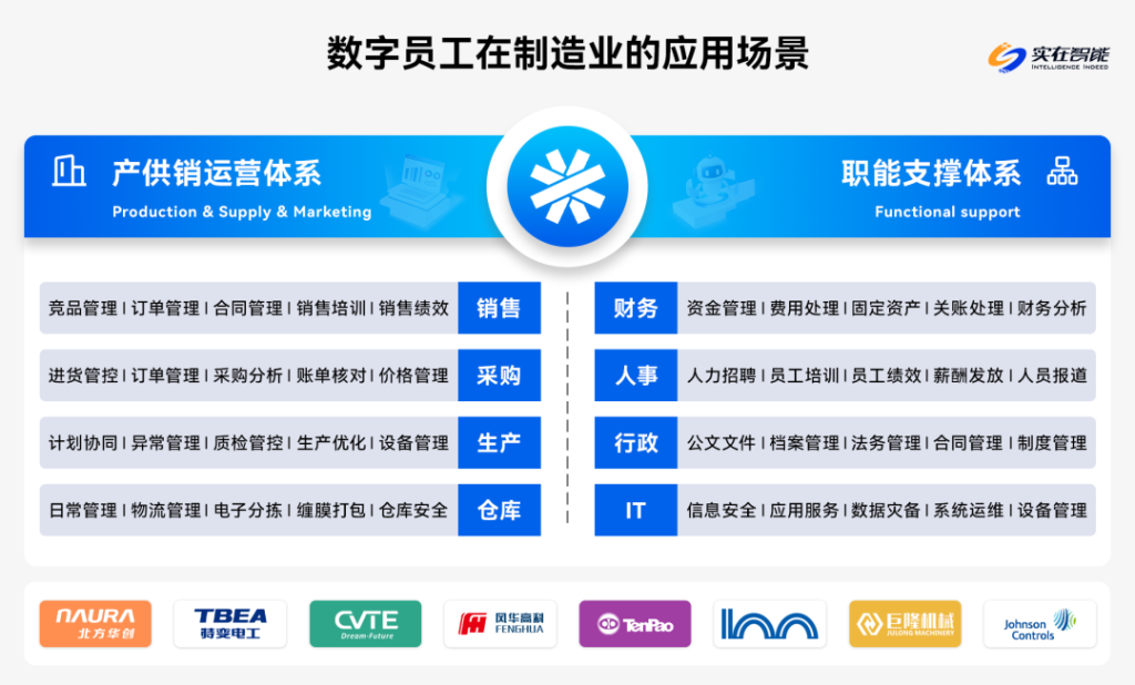 在国家政策引导与企业提质增效的双重作用下,北方华创、特变电工、视源股份、风华高科、天宝集团、江森日立、豪迈集团、巨隆机械、青岛特钢、裕同科技等超百家制造业巨头率先布局,引入实在Agent数字员工,促进形成新质生产力,通过智能化改造实现运营效率跃升、成本结构优化与员工价值的最大化。