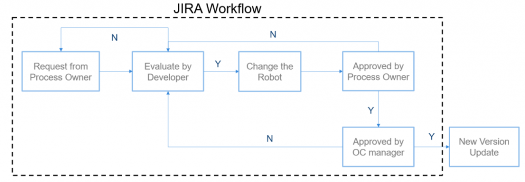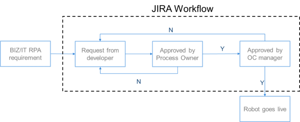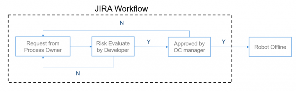 如下是RPA机器人流程上线部署的审批流程图,也是在Jira中实现的。