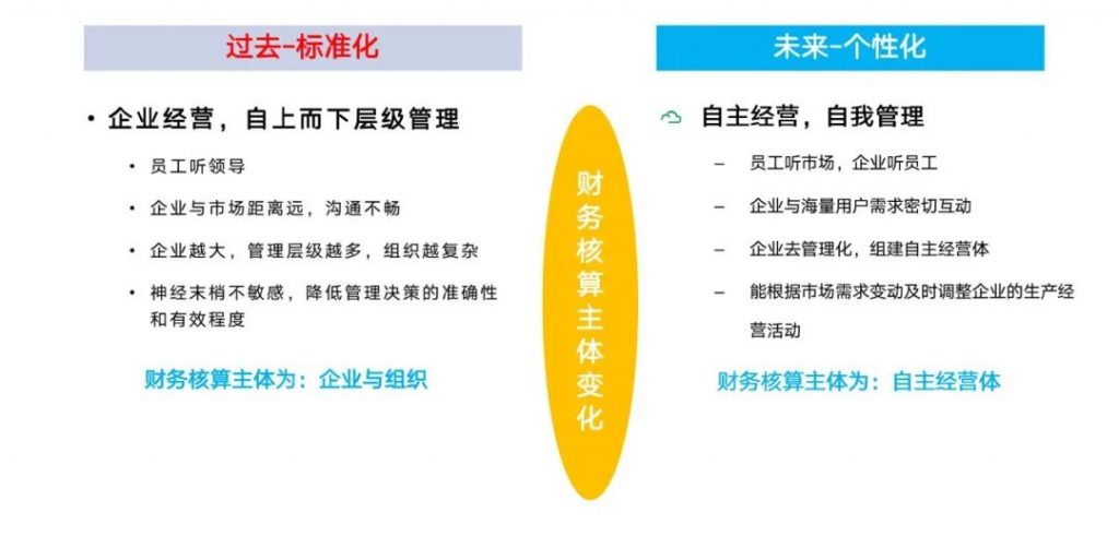 过去:企业经营,自上而下层级管理,财务核算主体为:企业与组织