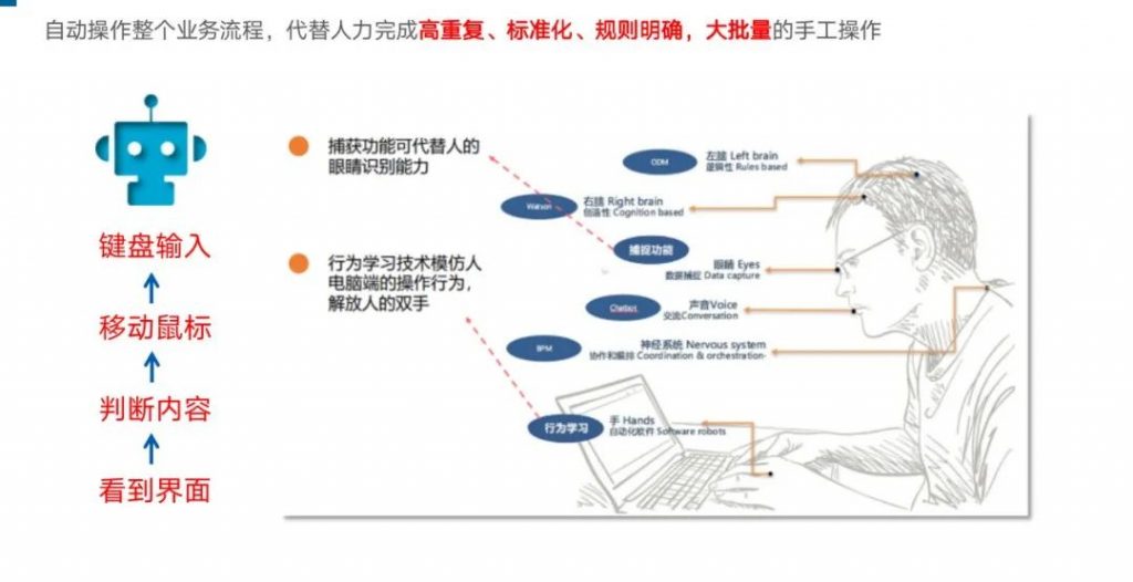 之前有研究机构做过市场调研,到2030年,50%的结构化重复任务要实现自动化,75%的商业应用会用到人工智能,现在大家已经能看到数字员工跟人协同作业的场景了。