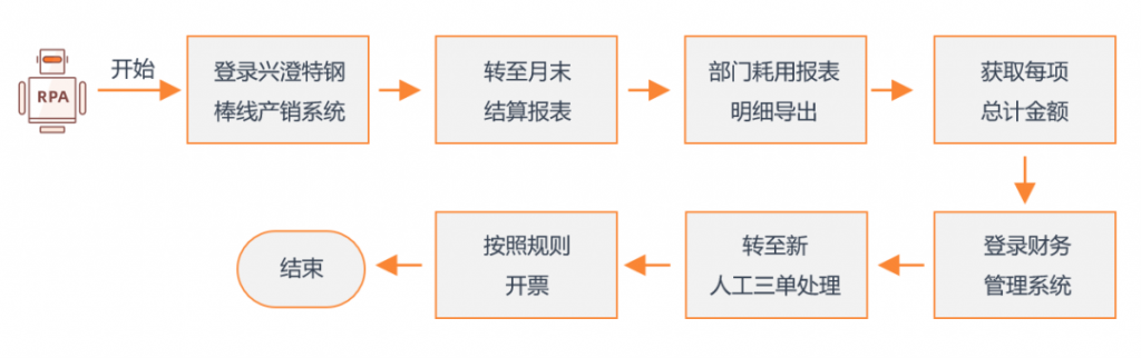 在兴澄特钢自动化项目中,弘玑Cyclone梳理了客户财务部典型业务流程,并完成流程中的Cyclone RPA智能机器人与业务系统的适配。在第一阶段工作中,将引导业务部门挖掘更多的可以适用的业务场景。