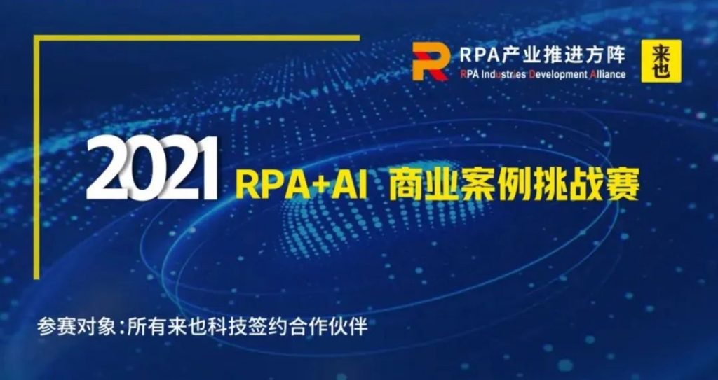 2021年 12 月 28 – 29 日,2021 RPA+AI 商业案例挑战赛线上初赛圆满完成,本次大赛由中国信息通信研究院 RPA 产业推进方阵为指导单位,来也科技为主办单位,面向全球来也科技合作伙伴进行案例征集及评比。